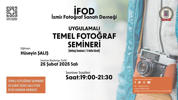 Hafta içi “Uygulamalı Temel Fotoğraf Semineri” 25 Şubat 2025 Salı günü başlayıp 5 hafta sürecektir.