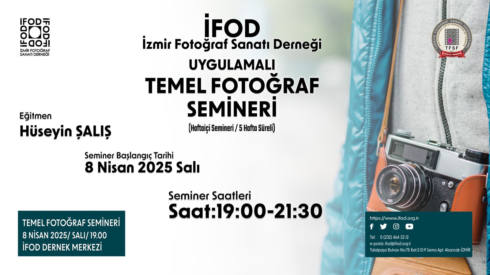 Eğitmenimiz Hüseyin ŞALIŞ ile Fotoğrafçılar İçin Uygulamalı Temel Fotoğrafçılık Semineri 8 Nisan Salı başlıyor.